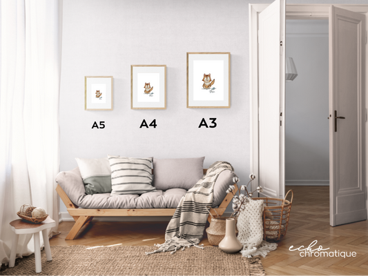 Tous les modèles proposés sont des impressions et vont du format A5 au format A3. Lorsque le modèle "original" est disponible il est proposé dans un format unique.