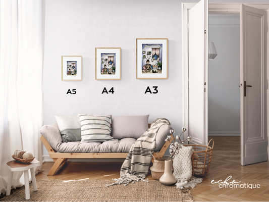 Tous les modèles proposés sont des impressions et vont du format A5 au format A3. Lorsque le modèle "original" est disponible il est proposé dans un format unique.