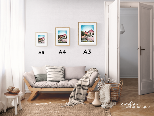 Tous les modèles proposés sont des impressions et vont du format A5 au format A3. Lorsque le modèle "original" est disponible il est proposé dans un format unique.