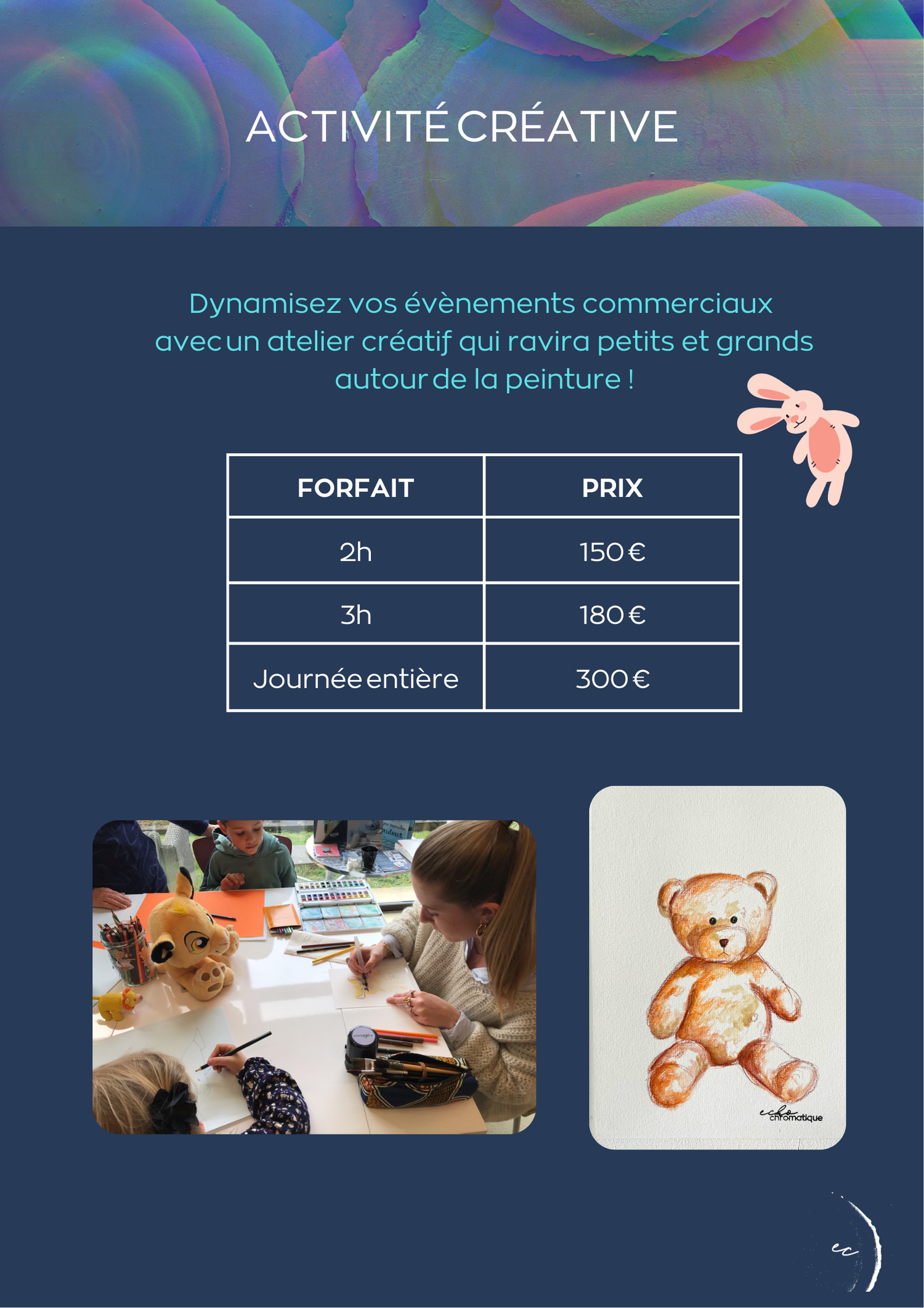 Je me déplace chez vous pour animer vos évènements professionnels autour d'une activité créative participative (ou non) selon vos préférences et votre thème !